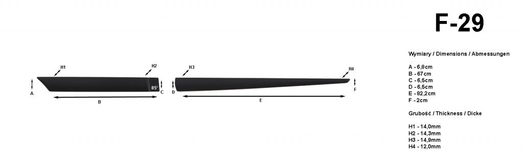 Vysoko kvalitné ochranné lišty bočných dverí čiernej farby. Tvar ochrannej lišty presne zodpovedá tvaru automobilu. Lišty dverí ochránia Vaše auto od škrabancov alebo preliačin spôsobených na úzkych parkovacích miestach. Bočné lišty dverí sú vyrobené z odolného polypuretánu bez použitia kovových súčasti.